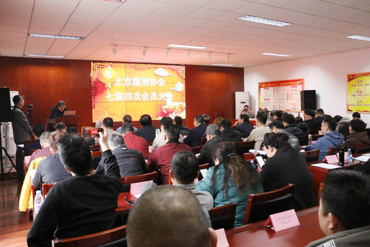 2026年3月13日,北京酿酒协会七届四次会员大会在北京华都酿酒食品有限责任公司召开。北京酿酒协会名誉理事长高景炎、北京酿酒协会理事长常明、北京酿酒协会副理事长裴振诗及一百余位会员代表参加了会议,会议由北京酿酒协会秘书长朱砚如主持。