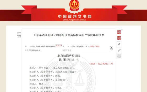 近期,北京知识产权法院对一起侵害商标权及不正当竞争纠纷案件作出终审判决(2026)京73民终111号,判决书中明确将产地不在北京却在产品上标注“北京二锅头”的行为,构成虚假宣传类不正当竞争。这一判决不仅为酒类品牌维权提供了有力支撑,更对规范二锅头品类市场秩序、保护北京二锅头品类价值、引导酒企诚信合规经营具有重要标杆意义。